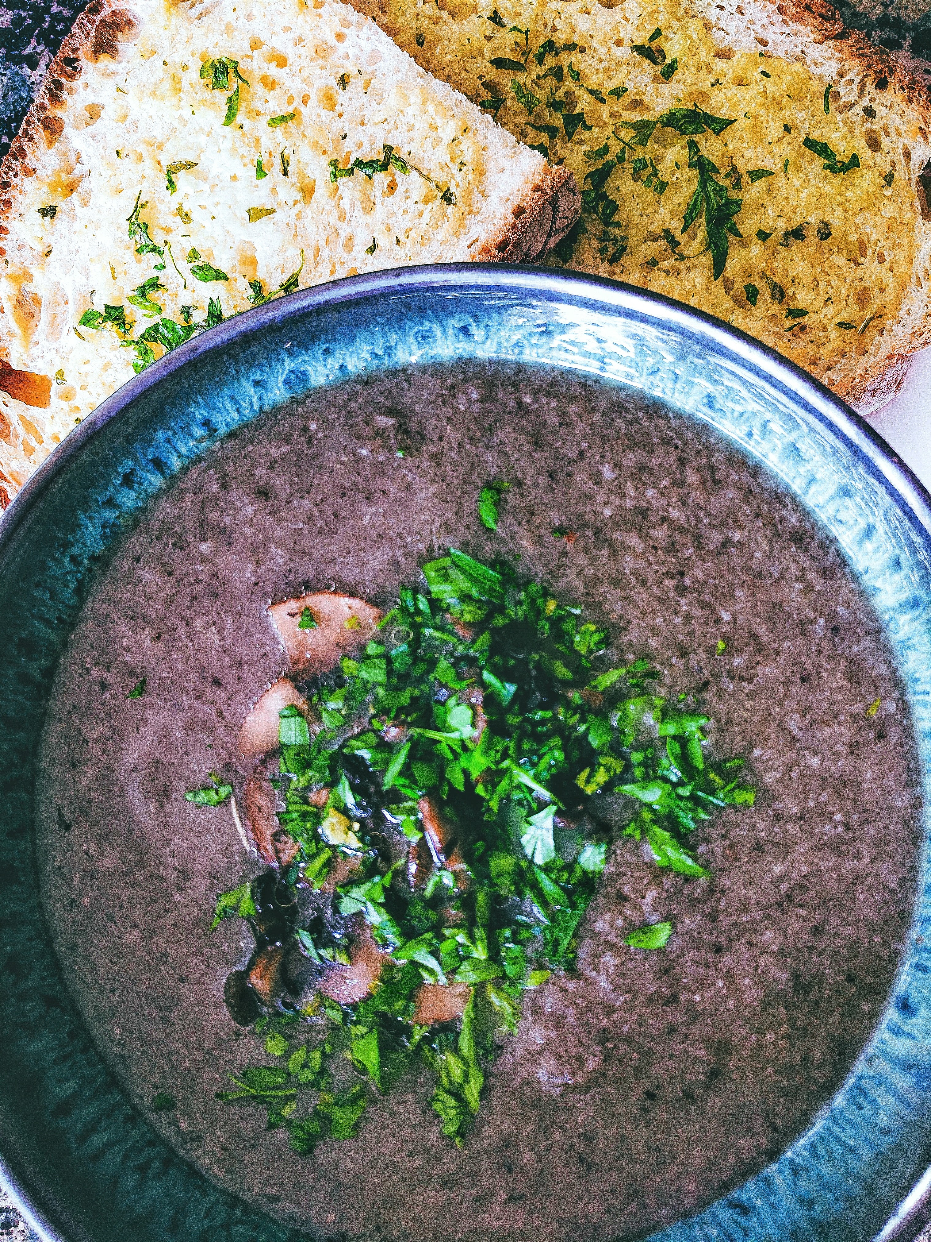 NON-CREAMY CREAM OF MUSHROOM SOUP WITH A KICK
